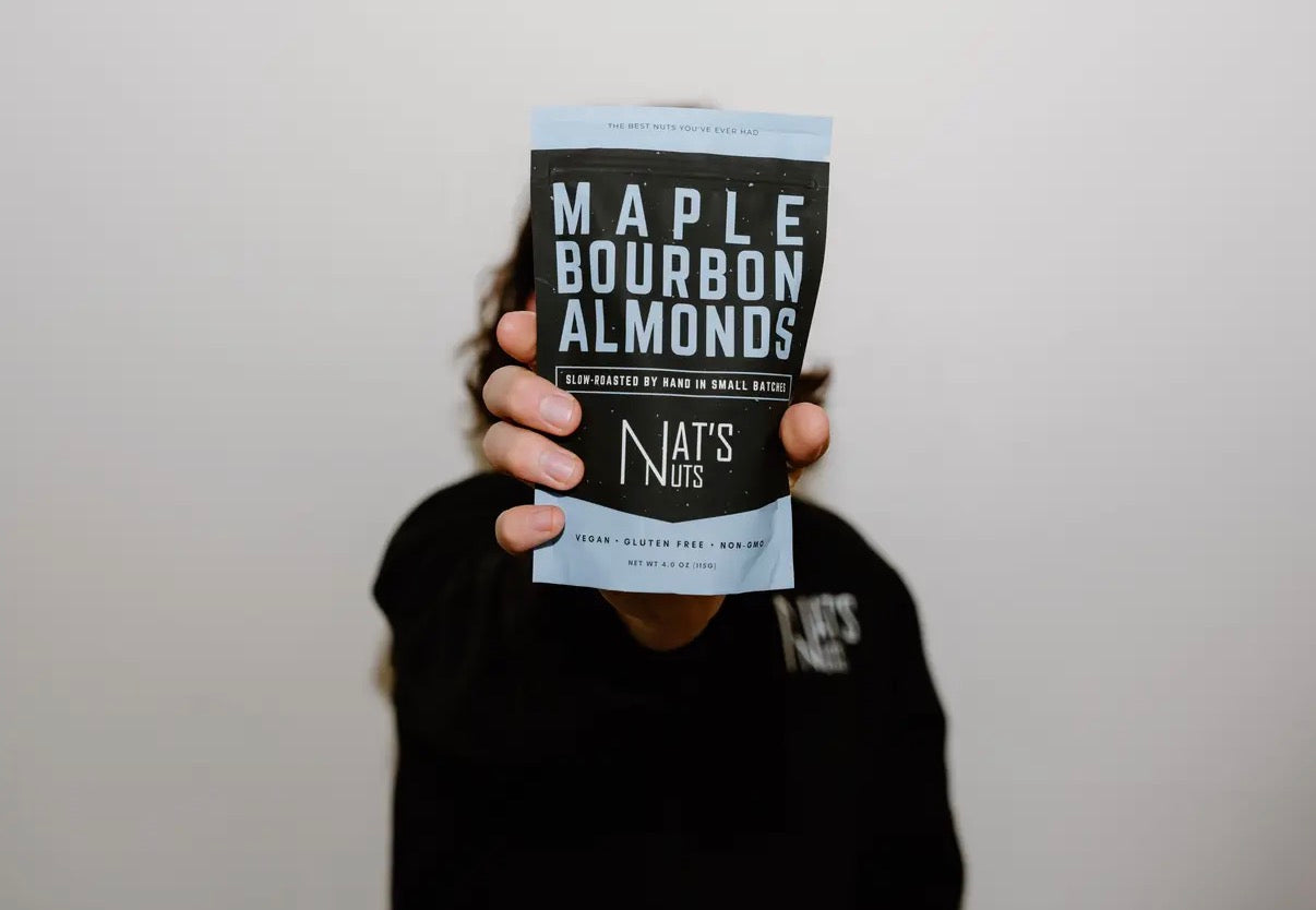 Our Maple Bourbon Almonds were inspired by a local Maple farmer who aged his Maple Syrup in Bourbon barrels. We use real bourbon which enhances the flavor of these nuts. They are crunchy, sweet, and bursting with flavor. All of the alcohol is cooked out of this product, so it is safe for the whole family! Our Natural Ingredients: Almonds, Pure Cane Sugar, Bourbon, Natural Maple Extract, Sea Salt Nat's Nuts are great in a gift basket or as a stand alone snack!