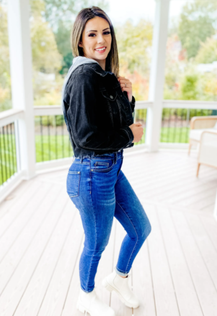 Stay stylish and warm with Risen, the distressed vintage raw hem jacket with a detachable hoodie. Its 20" length and 17 1/4" chest (1" below armhole) in size S will keep you comfortable. Made of 64.3% cotton, 22% polyester, 11.9% viscose, and 1.8% Lycra, this jacket is both functional and fashionable. (You'll definitely want to show it off!)